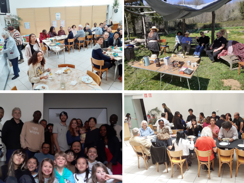 Des réunions bi-mensuelles sont organisées autour d’un repas et d’un témoignage ou d’un partage biblique proposé tour à tour par les membres du groupe.
